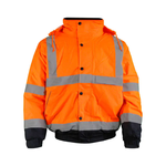 Warrior Orange_Navy HV Bomber. Hi Vis Bomber is a durable, high-visibility jacket designed to provide ultimate protection and comfort in demanding work environments. Crafted from 300D polyester fabric with a PU coating, this jacket ensures you stay visible, dry, and safe, no matter the conditions. This jacket is perfect for industries where visibility and protection are paramount, including construction, transportation, and roadwork. With its high-quality construction, practical features, and EN ISO certifications, the Hi Vis Bomber ensures that you stay visible, dry, and comfortable during your work shifts.