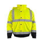 Warrior Yellow_Navy HV Bomber. Hi Vis Bomber is a durable, high-visibility jacket designed to provide ultimate protection and comfort in demanding work environments. Crafted from 300D polyester fabric with a PU coating, this jacket ensures you stay visible, dry, and safe, no matter the conditions. This jacket is perfect for industries where visibility and protection are paramount, including construction, transportation, and roadwork. With its high-quality construction, practical features, and EN ISO certifications, the Hi Vis Bomber ensures that you stay visible, dry, and comfortable during your work shifts.